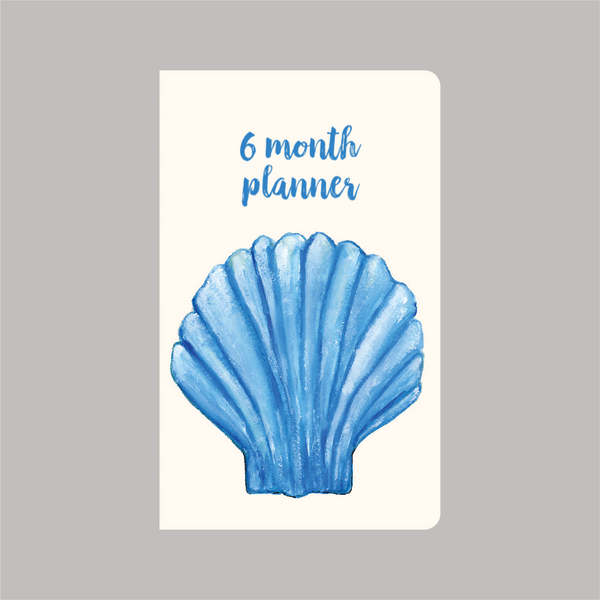 The Blue Seashell 6-Month Agenda, featuring artwork by Jenny Penton, is designed to help you plan your life. Originally created with acrylic paint, it first appeared in the Planner Perfect Monthly Subscription Box.