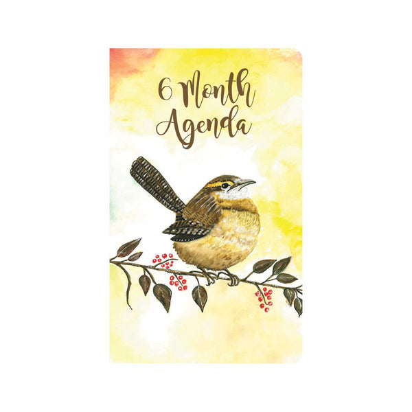 The Penny Wren 6 Month Agenda, featuring artwork by Jenny Penton, is designed to help you plan your life. Originally created with acrylic paint, it first appeared in the Planner Perfect Monthly Subscription Box.