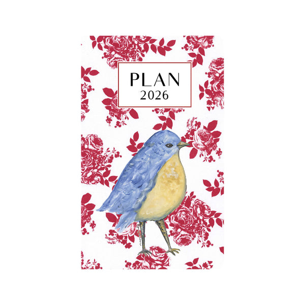Red Rose Bluebird 12 month planner artwork by Jenny Penton and ready for you to begin planning your life.