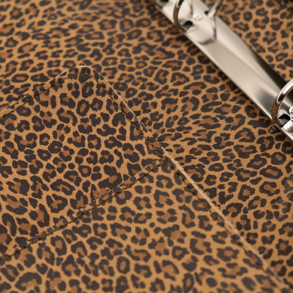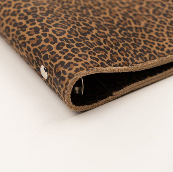 The A5 6-Ring Leather Binder features our cheetah print full grain American leather. Very durable, soft feel, and uniform texture. Grain and texture varies with each piece.